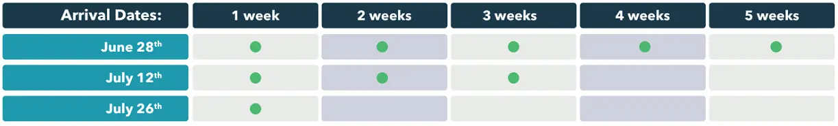 5 أسابيع | 28 يونيو - 2 أغسطس 2026